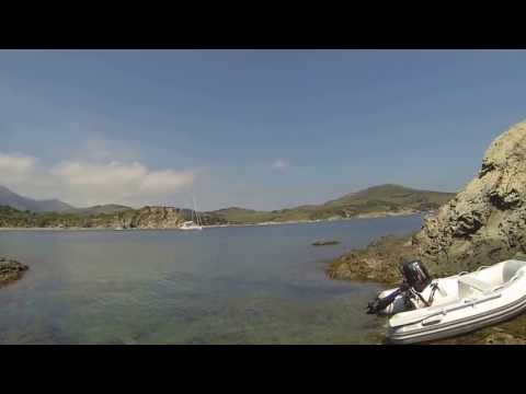 La semaine dernière nous sommes partis à 14 h, 4 h après l'horaire prévu pour cause de dragage de l'entrée du port. Le vent ne soufflait qu'à 4 à 6 nds apparent par le travers. Nous avons décidé d'envoyer le gennaker et alors que Michel s'affairait à l'avant Nicole a remarqué une ligne blanche de moutons en troupeau cavalant vers nous. Le gennaker prêt à être largué fut rapidement remisé dans la soute à voile. Moins d'une minute après le vent passait de 5 à 20 nds réel ! Nous avons alors pris un ris et serré le vent au plus prêt pour passer le Cap Béar, le pilote automatique faisant un travail correct. A l'approche du Cap le vent est monté à 25 nds tout en perdant de l'Est. Nous avons pris un deuxième ris juste avant de virer devant Collioure. Après quelques pointes à 10 nds, nous avons mouiller dans l'anse Paulilles avec un vent qui s'est calmé vers 21 h pour une nuit splendide de calme et de beauté sauvage.